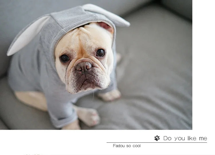 2. The hoodie's bunny ears are securely sewn onto the hoodie, and when worn, they flop gently downwards, giving your pet an irresistible bunny look.