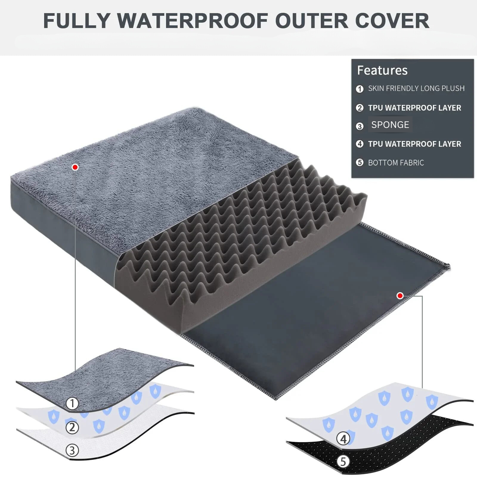 - Insert the egg-crate foam mattress into the waterproof shell.