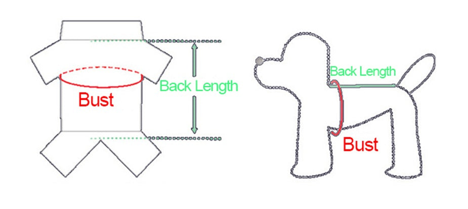 Not sure which size is best for your pet? Here are some guidelines. Please refer to the measuring chart in the photo gallery for measuring details. We recommend selecting a size that is at least 2 cm (1 in) bigger than your dog's measurement.